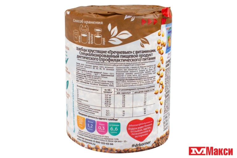Хлебцы «Гречневые» с витаминами не содержат глютен, поэтому могут употребляться в пищу людьми с заболеванием целиакия, а также приверженцами безглютеновой диеты.