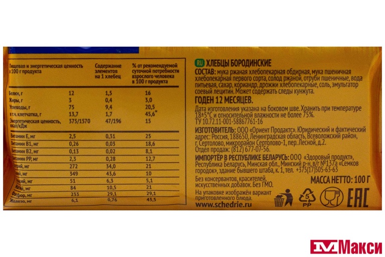 Восхитительное вкусовое сочетание — ржаная кислинка, пряный кориандр и сладость солода. Бородинские хлебцы прекрасно подходят для приготовления бутербродов и легких закусок.