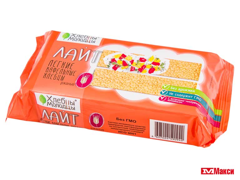 Хлебцы-Молодцы «Лайт» - это лёгкие и хрустящие хлебцы! Благодаря исходным ингредиентам, специальной технологии изготовления, отсутствия в хлебцах искусственных добавок (красителей, ароматизаторов, консервантов) и дрожжей, они являются источниками полезных веществ, натуральны и вкусны!