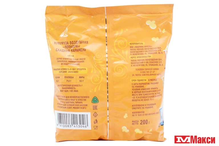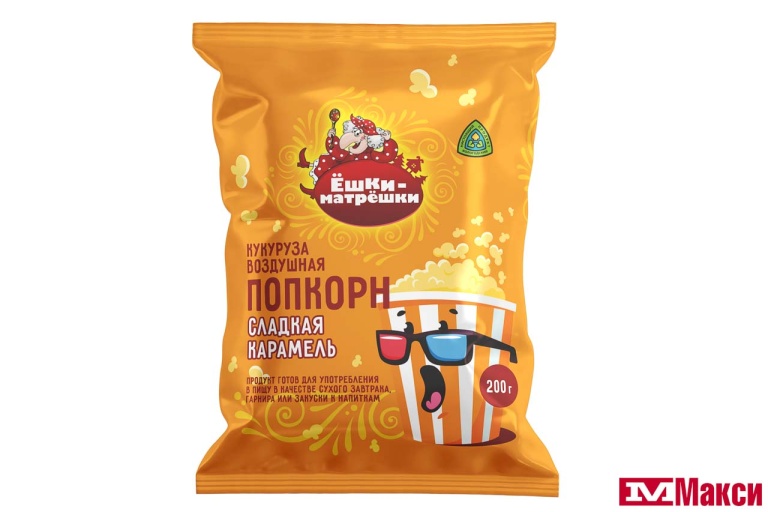 КУКУРУЗА ВОЗДУШНАЯ "ЁШКИ-МАТРЁШКИ" СЛАДКАЯ КАРАМЕЛЬ 200Г