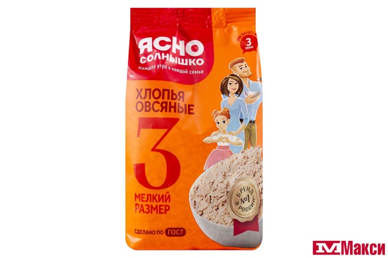 ХЛОПЬЯ ОВСЯНЫЕ "ЯСНО СОЛНЫШКО" №3 250Г