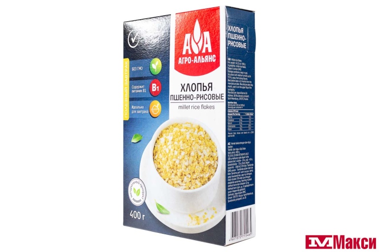 ХЛОПЬЯ ПШЕННО-РИСОВЫЕ НЕ ТРЕБУЮЩИЕ ВАРКИ 400Г (АГРО-АЛЬЯНС)