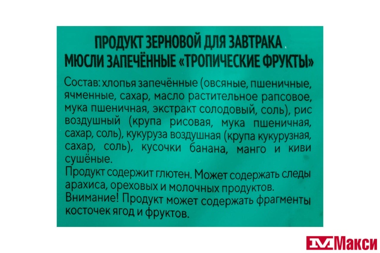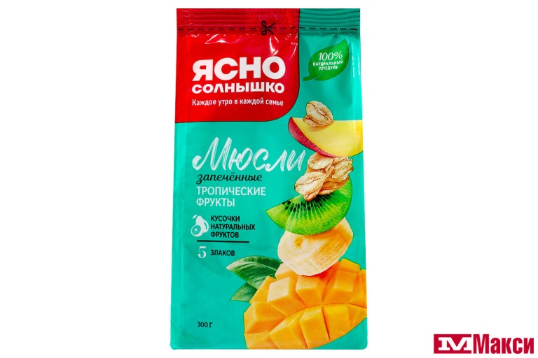 МЮСЛИ "ТРОПИЧЕСКИЕ ФРУКТЫ" ЗАПЕЧЕННЫЕ 300Г (ЯСНО СОЛНЫШКО)