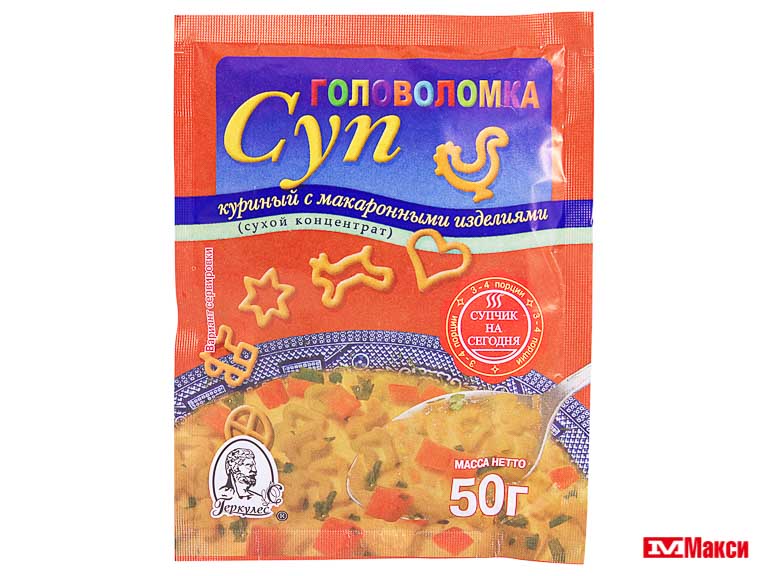 СУП "ГОЛОВОЛОМКА" КУРИНЫЙ С МАКАРОННЫМИ ИЗДЕЛИЯМИ 50Г (ГЕРКУЛЕС)