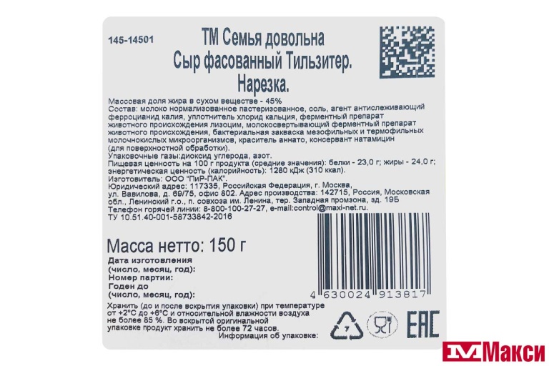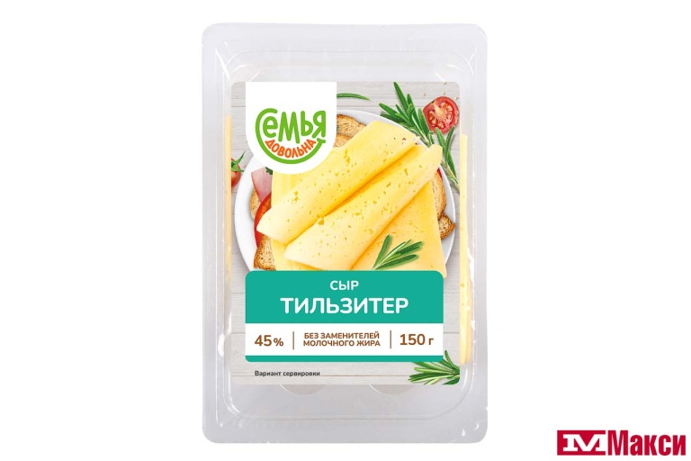 СЫР "ТИЛЬЗИТЕР" 45% 150Г (СЕМЬЯ ДОВОЛЬНА) (БЗМЖ)