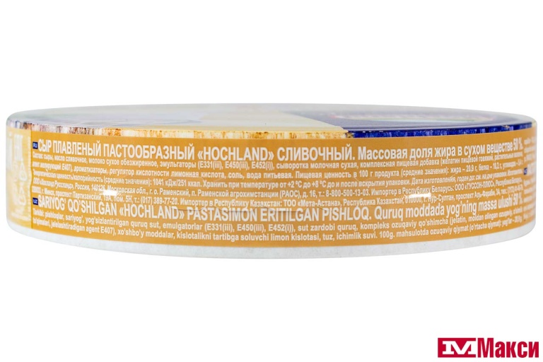 СЫР ПЛАВЛЕНЫЙ "ХОХЛАНД" СЛИВОЧНЫЙ 50% 140Г КРУГ (HOCHLAND) (БЗМЖ)