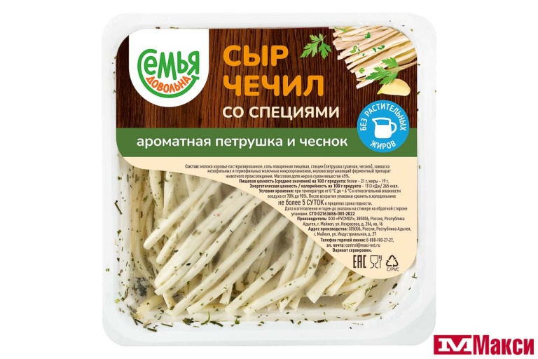 СЫР "ЧЕЧИЛ" НИТИ СО СПЕЦИЯМИ ЧЕСНОК-ПЕТРУШКА 45% 100Г (СЕМЬЯ ДОВОЛЬНА)(БЗМЖ)