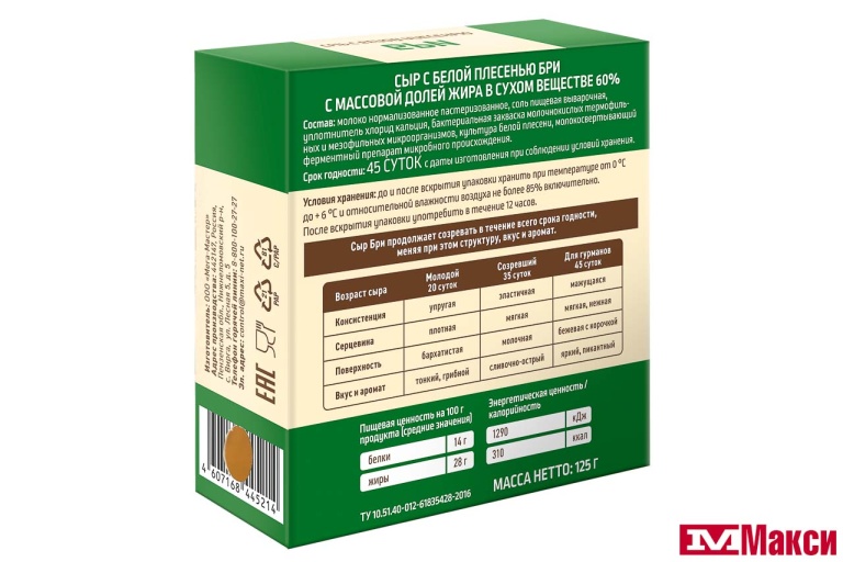 СЫР "БРИ" С БЕЛОЙ ПЛЕСЕНЬЮ 60% 125Г (ФЕРМА БРАТЬЕВ ПЕТРОВЫХ) (БЗМЖ)