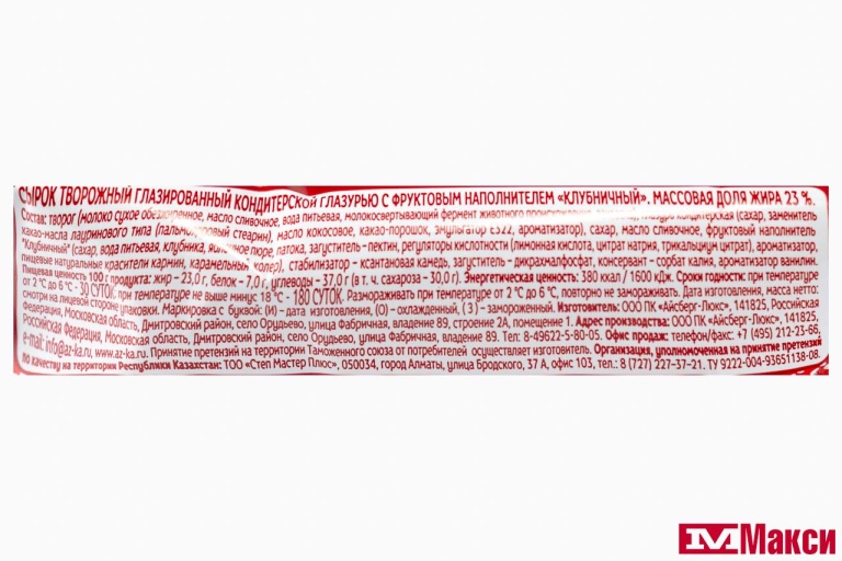 творог (молоко сухое обезжиренное, масло сливочное, вода питьевая, молокосвёртывающий ферментный препарат животного происхождения, закваска), глазурь кондитерская (сахар, заменитель какао-масла лауринового типа (пальмоядровый стеарин), масло кокосовое, какао-порошок, эмульгатор Е322, ароматизатор), сахар, масло сливочное, начинка кондитерская "Варёная сгущёнка" (сахар, сухое обезжиренное молоко, сыворотка молочная деминерализованная, заменитель молочного жира (пальмовое и его фракции, подсолнечное, рапсовое масла в различных соотношениях), стабилизатор консистенции агар, пищевой натуральный краситель карамельный коллер, ароматизатор "Тоффи"), стабилизатор - ксантановая камедь, загуститель - дикрахмалфосфат, консервант - сорбат калия, ароматизатор ванилин