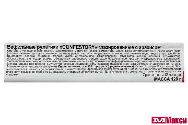ВАФЕЛЬНЫЕ РУЛЕТИКИ "CONFESTORY" ГЛАЗИРОВАННЫЕ С АРАХИСОМ 120Г