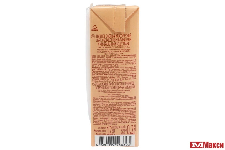 НАПИТОК "NEMOLOKO" ОВСЯНЫЙ КЛАССИЧЕСКИЙ ЛАЙТ 1,5% 200МЛ