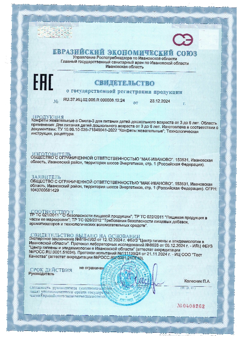 патока, сахар, вода питьевая, маргарин (масла растительные рафинированные дезодорированные, вода питьевая, натуральный ароматизатор: масло сливочное), эмульгатор: соевый лецитин; сахарная помадка (сахар, патока, вода питьевая), желатин пищевой, ароматизаторы натуральные, краситель: каротины, БАД к пище «MEG-3® ?30 ? n-3 ИНФ Масло» (рафинированный рыбий жир с высоким содержанием докозагексаеновой и эйкозапентаеновой кислот) (MEG-3® ?30 ? n-3 INF OIL)