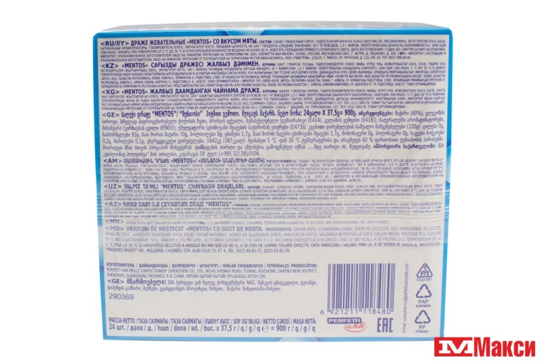 Жевательные драже Mentos Мята – это драже с нежным приятным вкусом мяты.