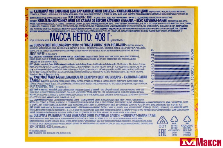 Жевательная резинка Orbit XXL "Клубника-банан" без сахара способствует поддержанию здоровья зубов: удаляет остатки пищи, способствует уменьшению зубного налета, нейтрализует вредные кислоты, усиливает процесс реминерализации эмали.
