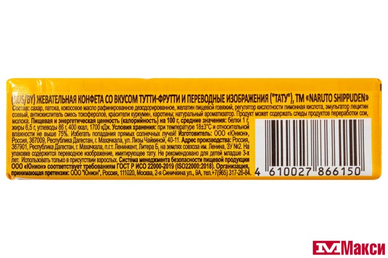 ЖЕВАТЕЛЬНАЯ КОНФЕТА "NARUTO SHIPPUDEN" ТУТТИ-ФРУТТИ С ТАТУ 25Г