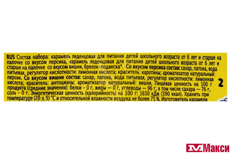 со вкусом персика: сахар, патока, вода питьевая, регулятор кислотности: лимонная кислота; краситель: каротины; ароматизатор натуральный: персик; со вкусом вишни: сахар, патока, вода питьевая, регулятор кислотности: лимонная кислота; краситель: антоцианы; ароматизатор натуральный: вишня